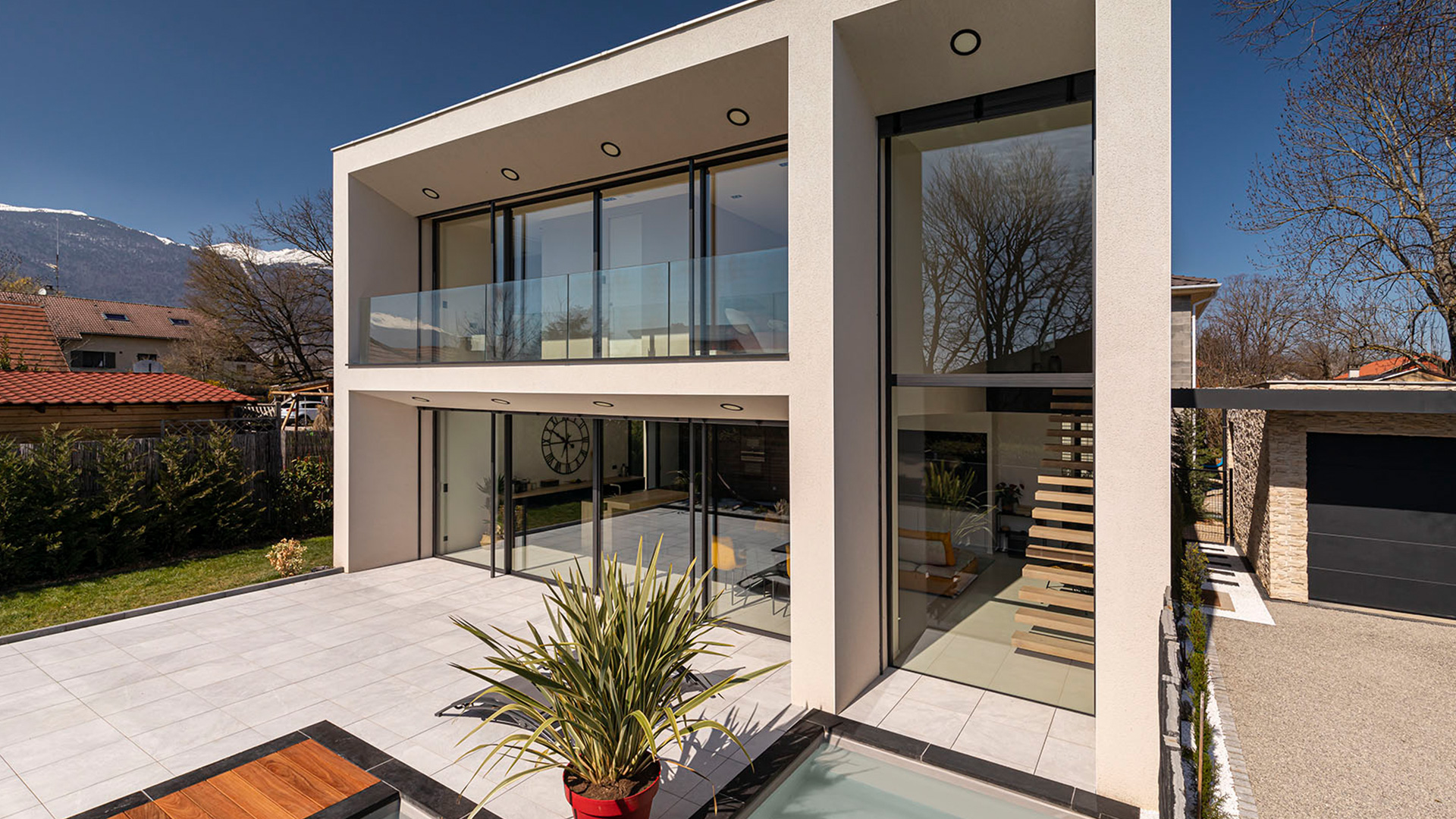 The single-family house is implanted in the Dynamic cross-border agglomeration, Greater Geneva, on the french side, on a plot of 400m2.